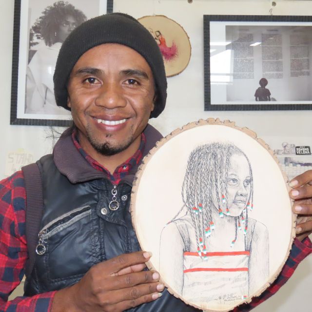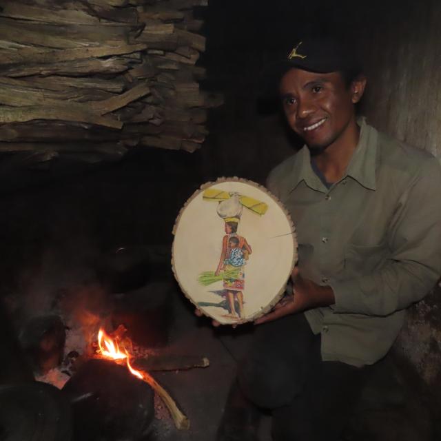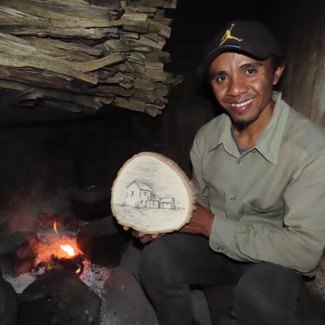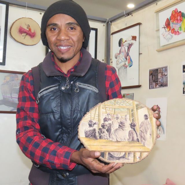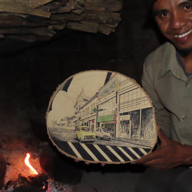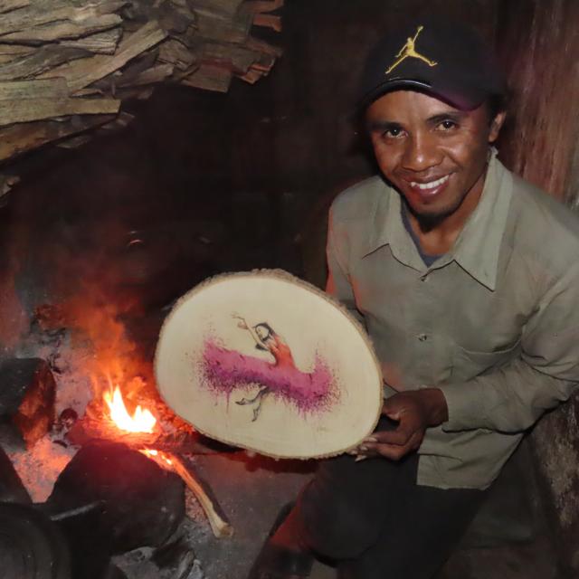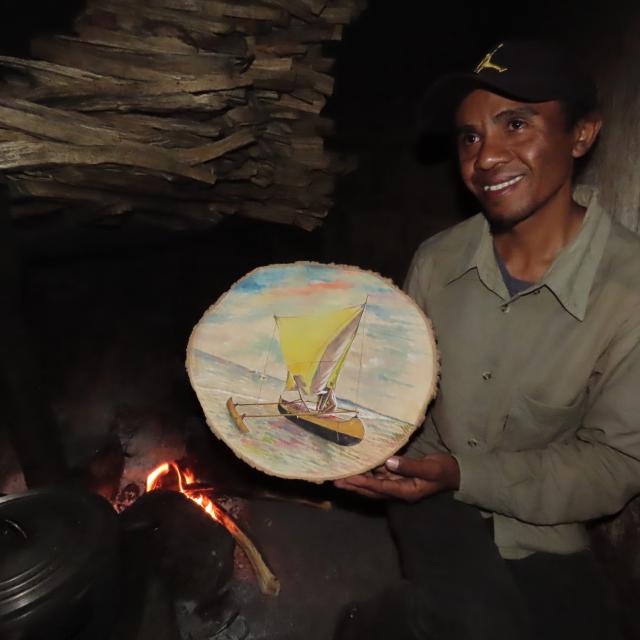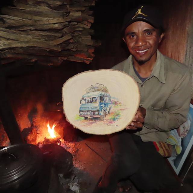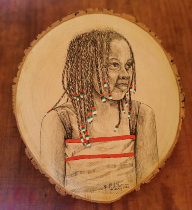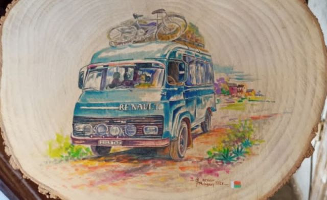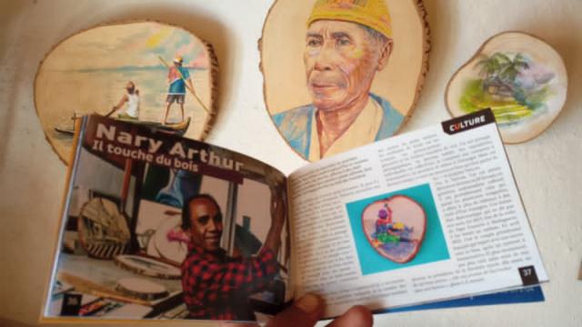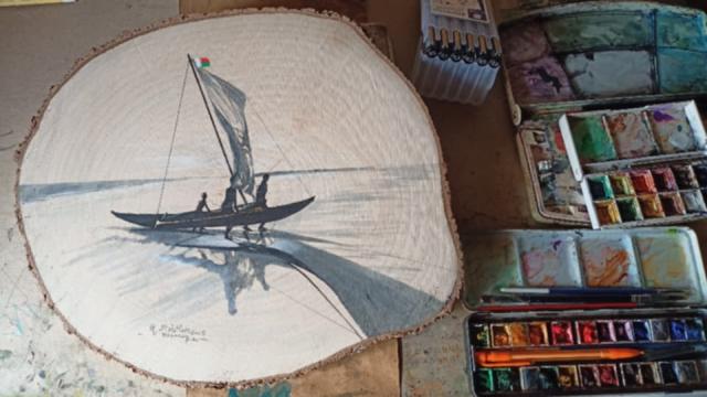 Artiste malagasy confirmé dans l’aquarelle, Nary Arthur transpose sa maîtrise sur peinture sur bois.