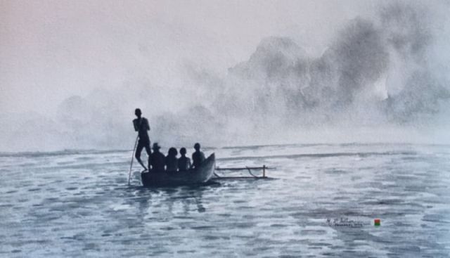 Nary Arthur commmentaire | Les couleurs du matin au bord de la mer, départ des pêcheurs |