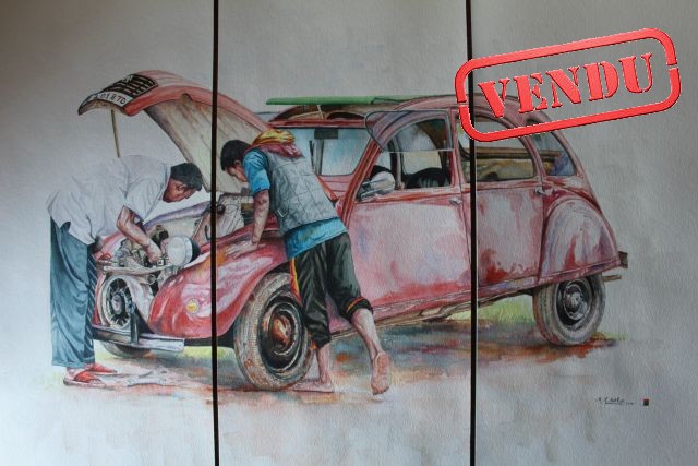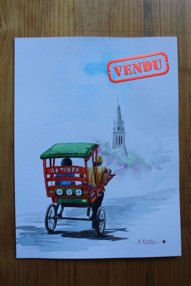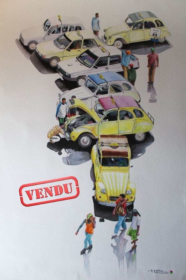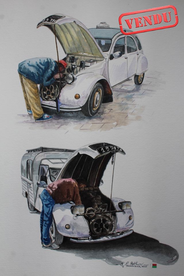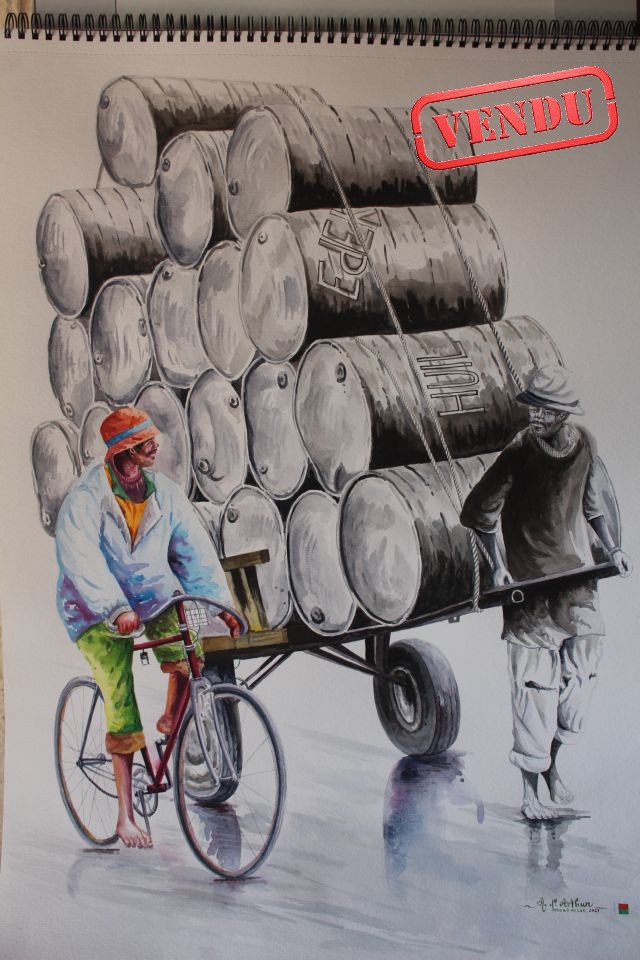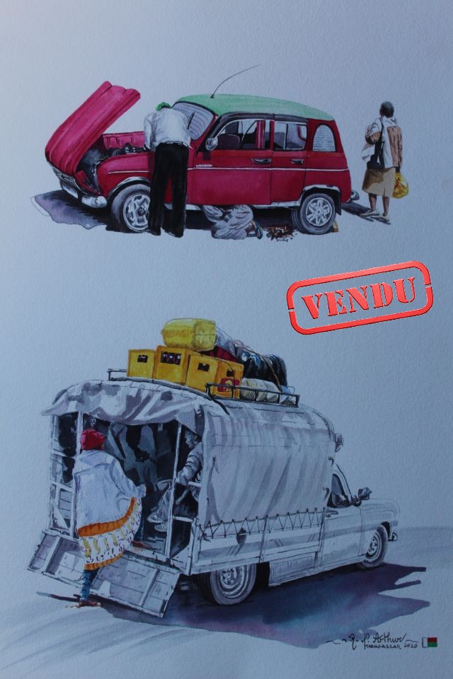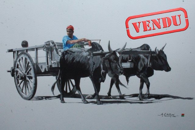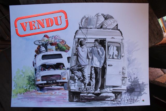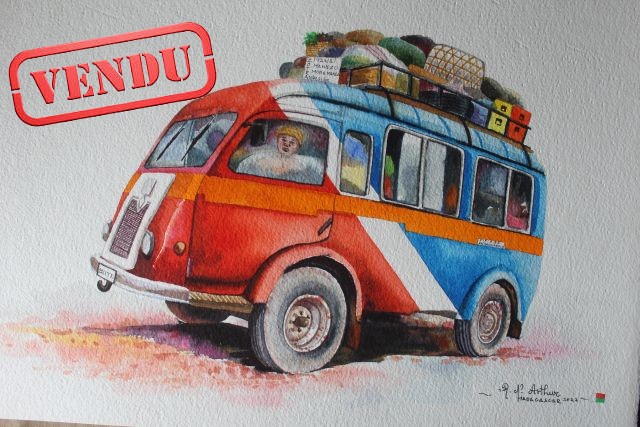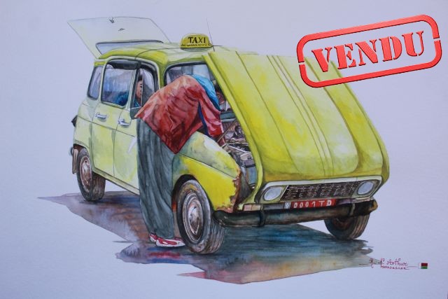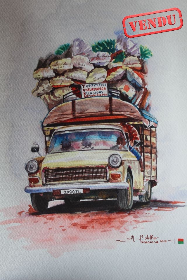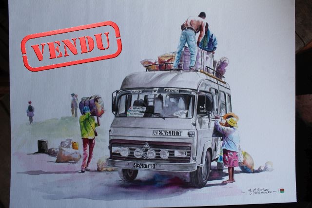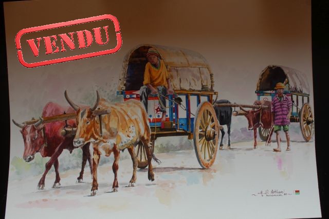 Vous y retrouvez des tableaux de son inspiration personnelle. Il a mis en valeur à travers ses pinceaux et ses couleurs toute la vie quotidienne des Malagasy : travail dans les rizières, sur les marchés ou dans les carrières du Village Akamasoa. Il a également honoré des commandes privées pour mettre en valeur des voitures personnelles, des animaux de compagnies, des portraits. Nary Arthur le nouveau Maitre de l’Aquarelle y dévoile tout son savoir-faire. Vous aussi, je vous invite à le solliciter pour mettre en valeur et en couleurs vos portraits ou biens personnels ou objets de collections.