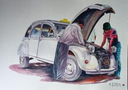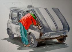 Taxi-brousse 1000 kilo Bleu Aquarelle sur papier |